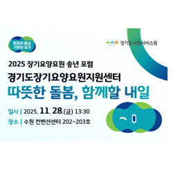 한 해 동안 현장에서 헌신해 온 장기요양요원 여러분의 노고를 격려하고,돌봄의 가치를 다시 한번 되새기기 위해 뜻 깊은 자리..