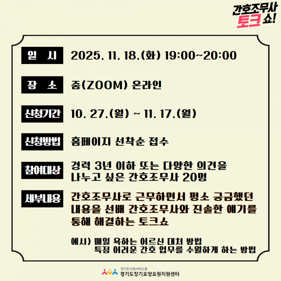 | 교육대상 | 도 내 장기요양기관 소속 간호조무사 | ||