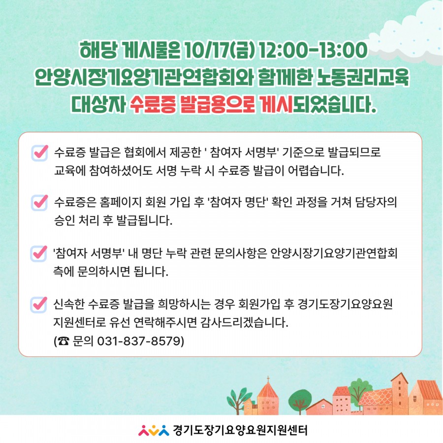 교육대상 | 안양시 내 주간보호센터 시설장 및 사회복지사 | ||