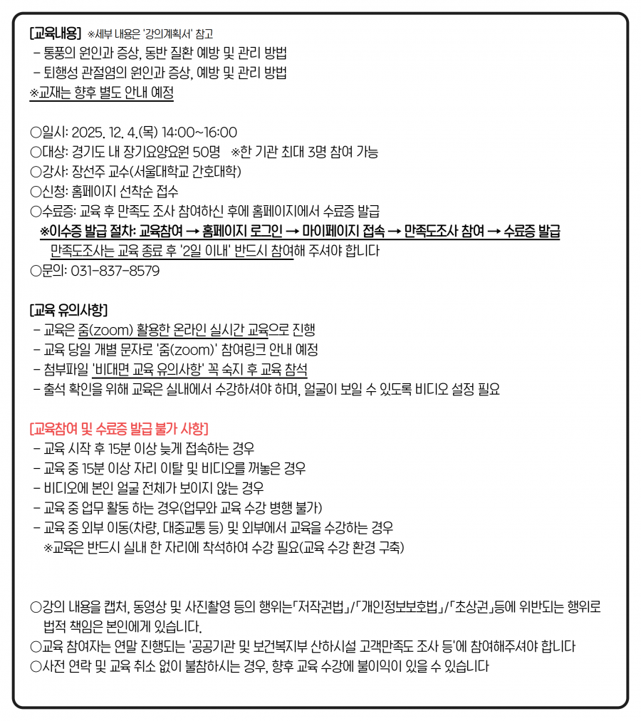 - 이전글2025 송년 포럼 행사 '따뜻한 돌봄, 함께할 내일' 25.11.10