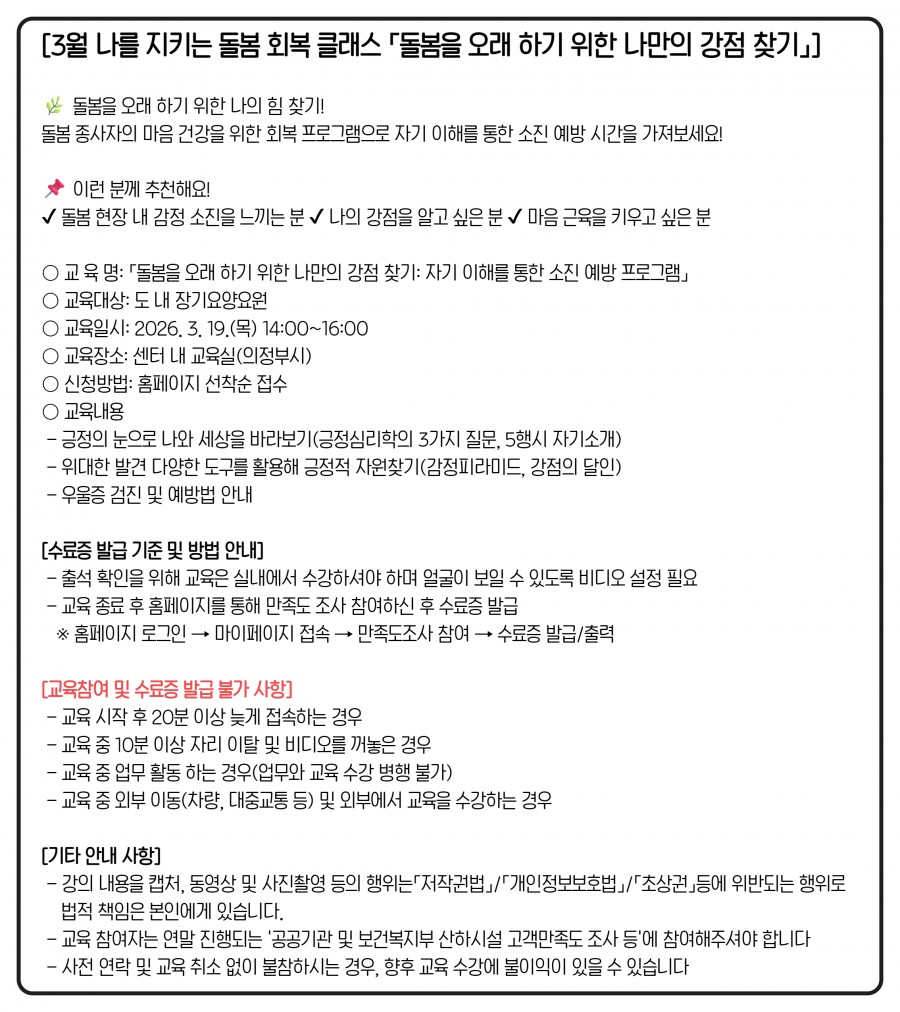 | 교육대상 | 도내 장기요양요원 | ||