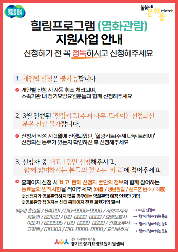 [힐링프로그램]돌봄에 문화를 더하다(영화관람 지원)