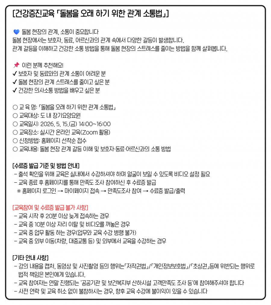 | 교육대상 | 도내 장기요양요원 | ||