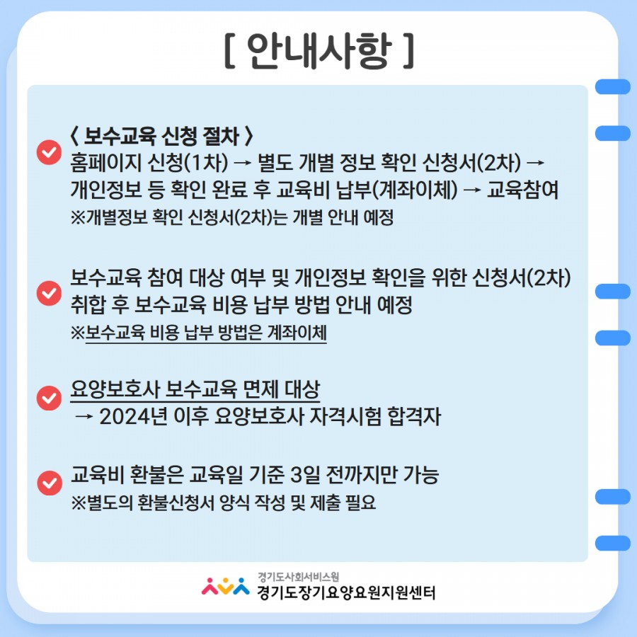 | 준비사항 | 신분증, 요양보호사 자격증 | ||