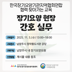 해당 교육은 한국장기요양기관지엽협회연합 협력 찾아가는 교육으로신청 방법 등의 세부 내용은 협회에서 안내한..