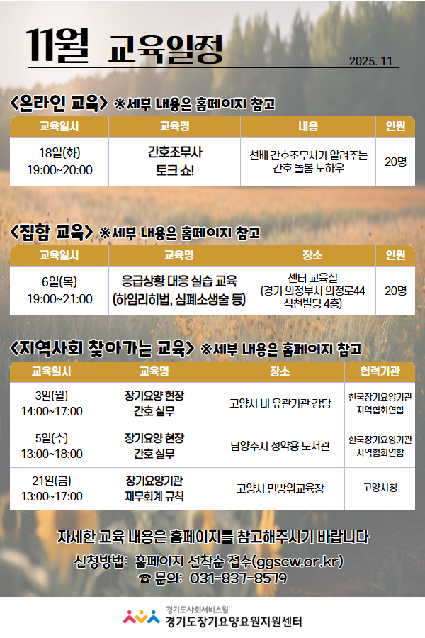 [안내] 11월 장기요양요원 교육 일정 안내