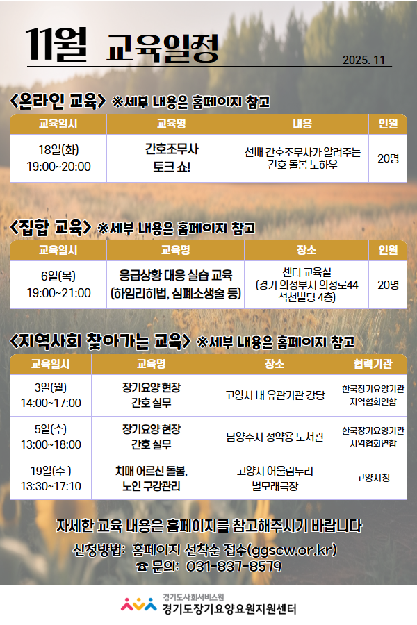 장기요양요원 역량강화를 위한 11월 교육이 시작됩니다!