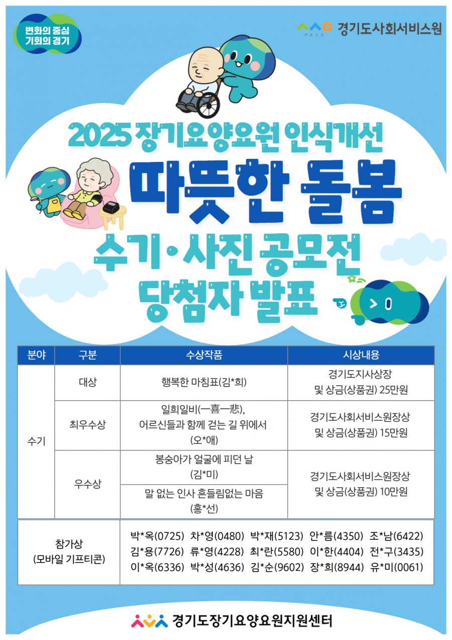 다시 한 번 공모전에 참여해주신 모든 장기요양요원분들께 진심으로 감사드립니다.
