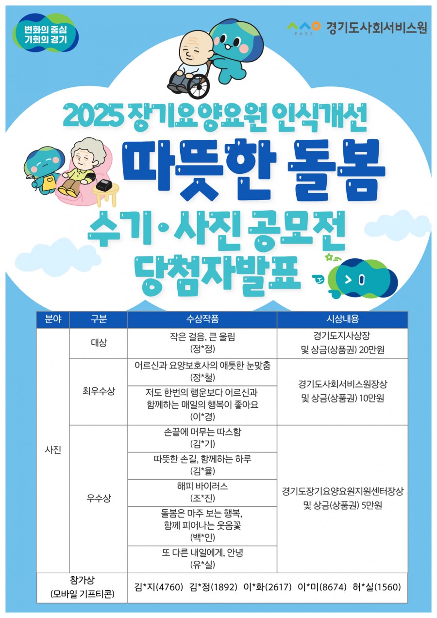 「2025년 장기요양요원 인식개선 수기·사진 공모전」에 보내주신 여러분의 관심과 성원 덕분에