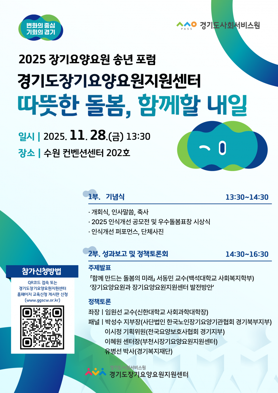 돌봄 현장의 발전 방향을 함께 모색하고자 「2025년 장기요양요원 송년포럼 ‘따뜻한 돌봄, 함께할 내일’」을 마련했습니다.