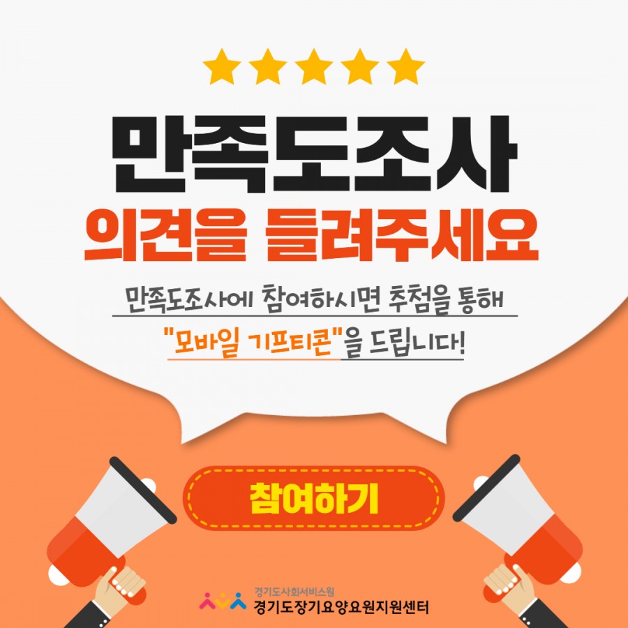 경기도 내 장기요양요원 여러분의 소중한 의견을 듣고자 2025년도 경기도장기요양요원지원센터 이용자 만족도 조사를 실시합니다.