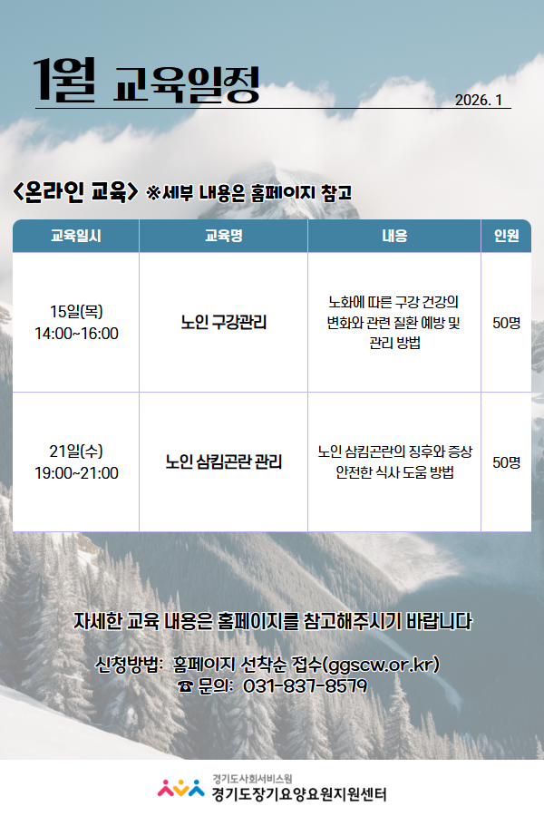 다양하고 유익한 2026년 1월 교육 일정을 함께 확인해볼까요?