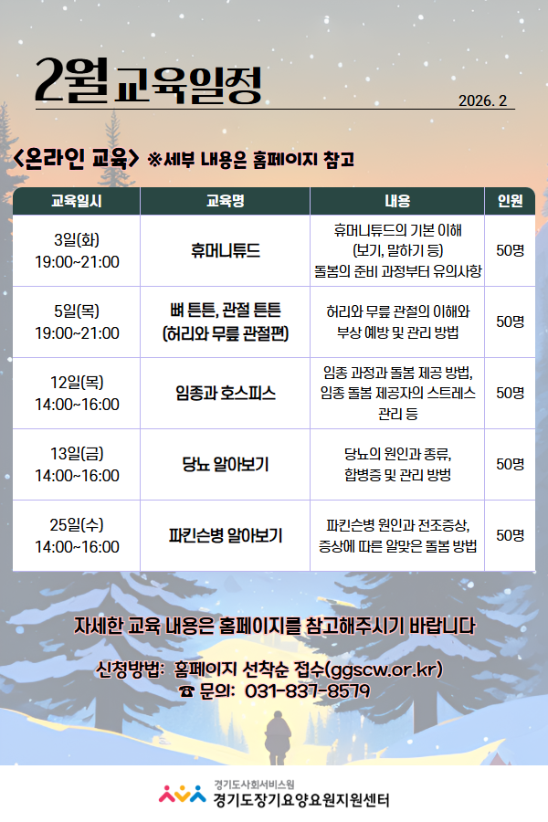 장기요양요원 역량강화와 건강증진을 위한 2026년 2월 교육이 시작됩니다!