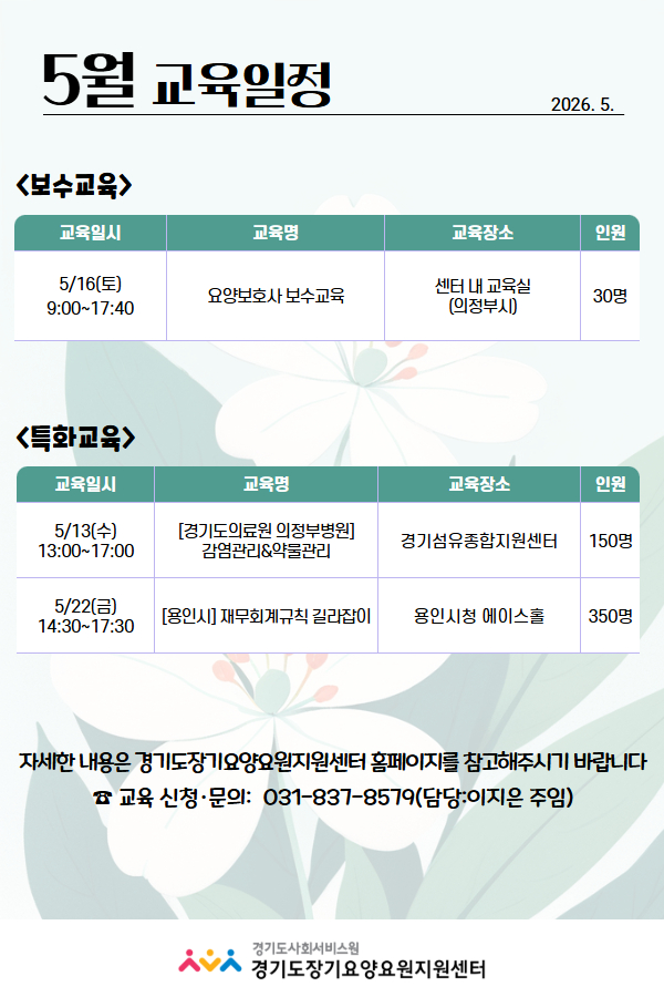 5월에는 장기요양 현장에서 필요한 실무 역량을 높일 수 있는 전문성 강화 교육과