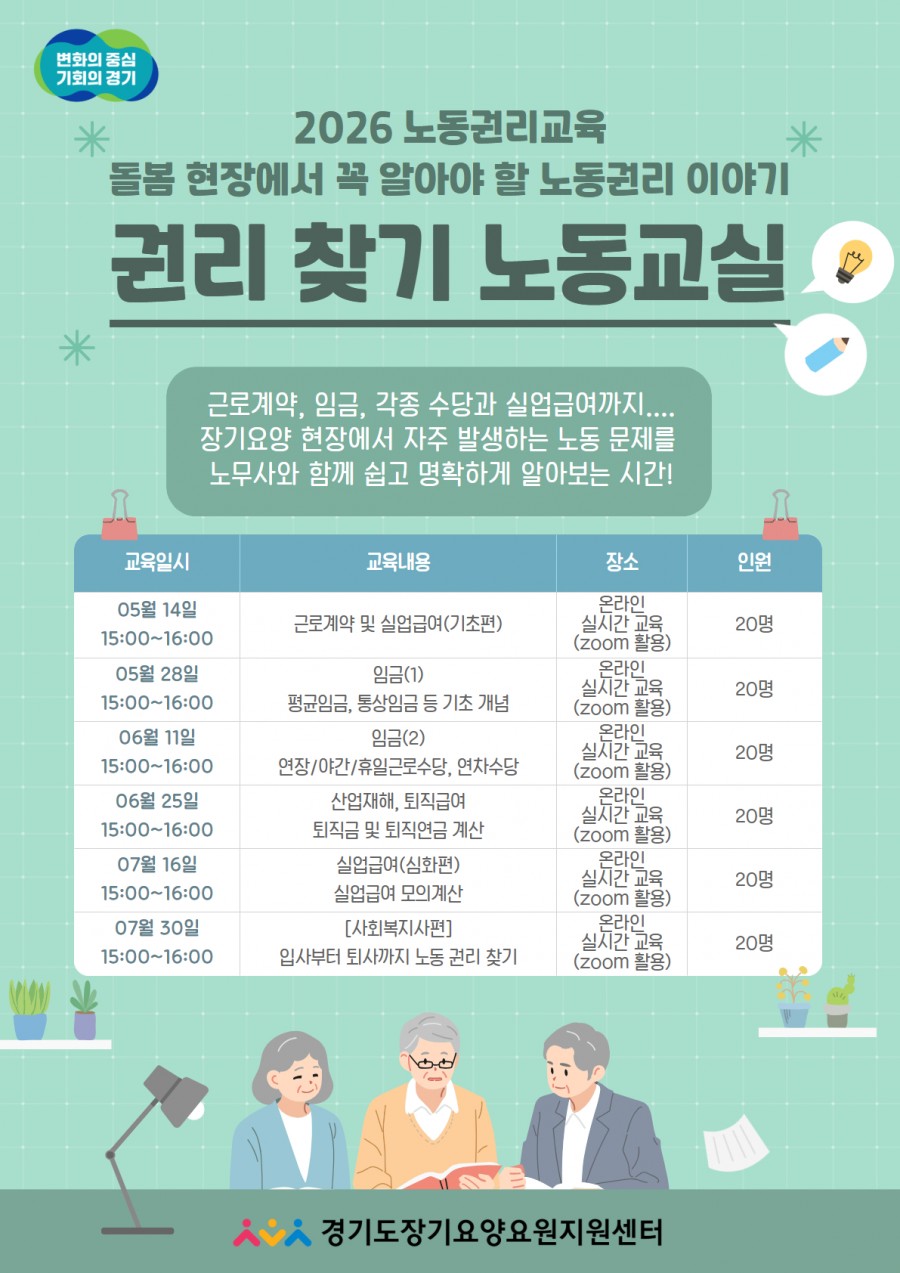 • 교육명: 2026 노동권리교육 「권리찾기 노동교실」