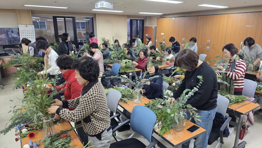 마음을 어루만지는 원예활동으로 나만의 힐링 꽃병 만들기 체험을 함께했습니다.