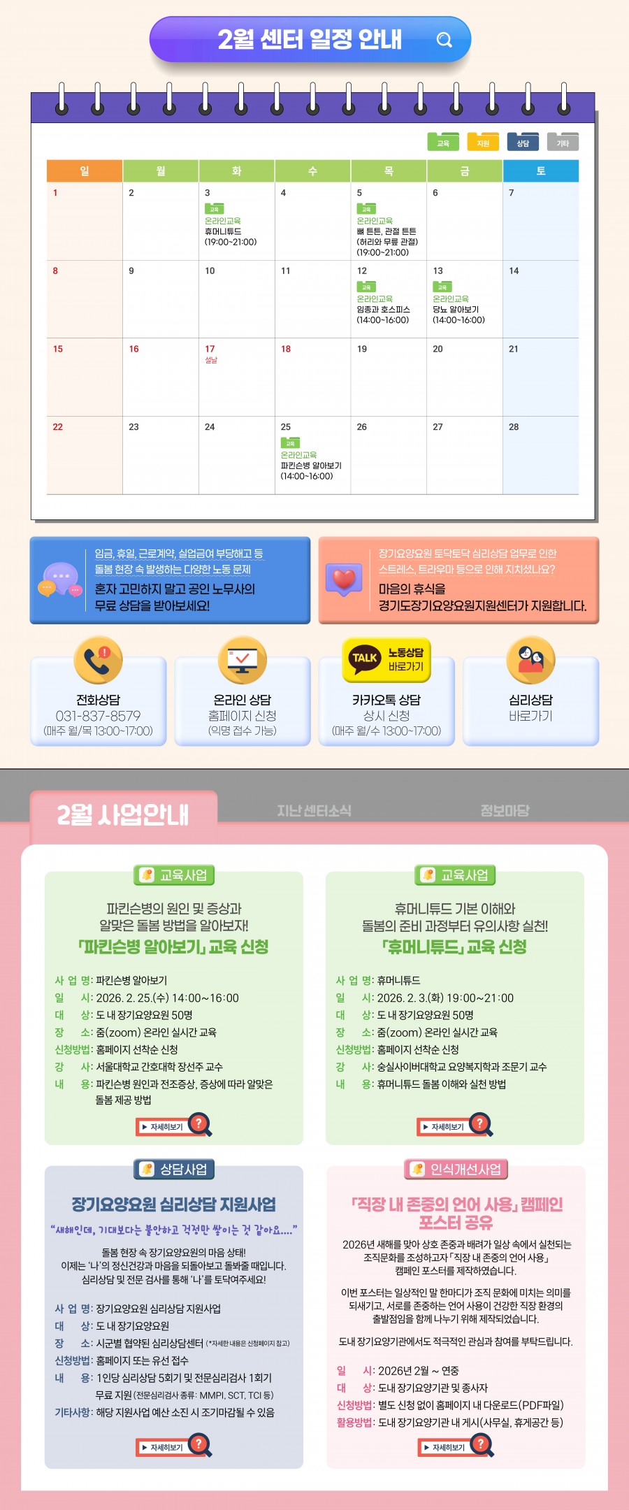 2026년 2월 주요 교육 및 프로그램 일정을 확인해주세요!