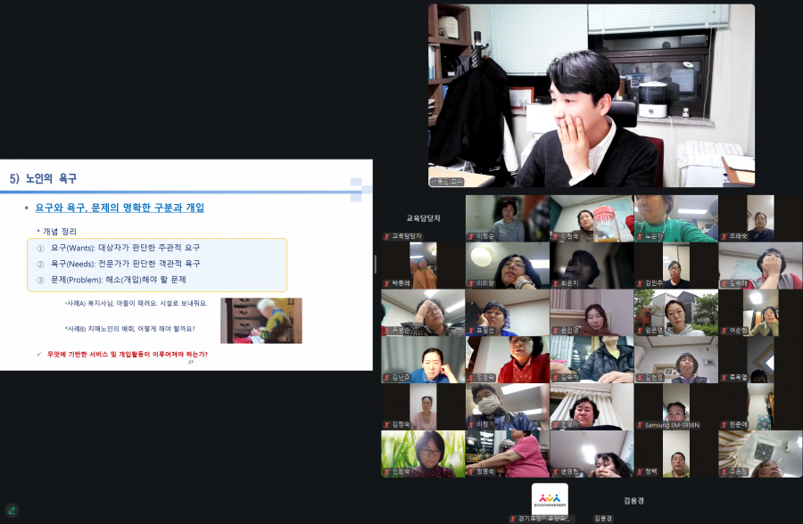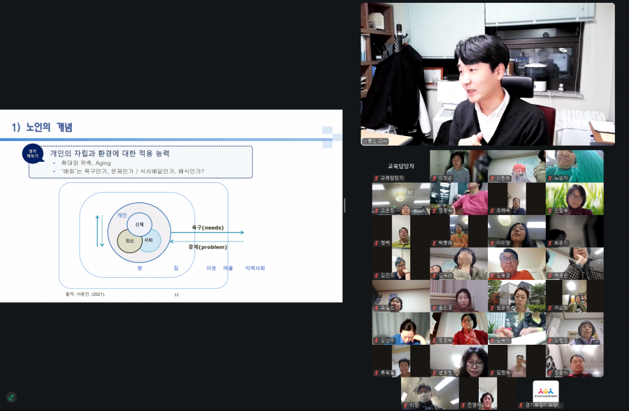 실시간 온라인(ZOOM)으로 3월 현장실천형 교육 「어르신도 나도 무너지지 않는 인간중심 돌봄 기본 원칙」을 운영하였습니다.