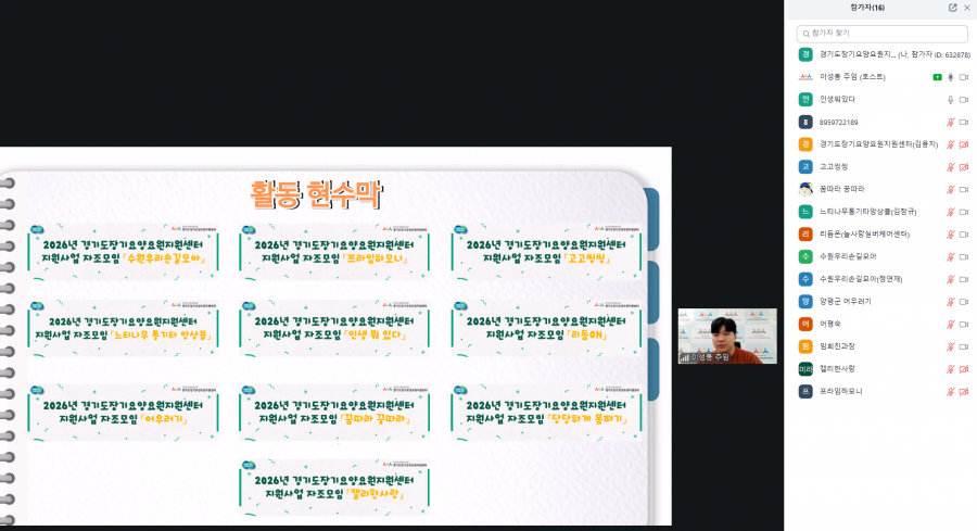실시간 온라인 정담회를 통해 2026년 선정 자조모임 참여자를 대상으로 자조모임 운영 관련 안내를 진행하였습니다.