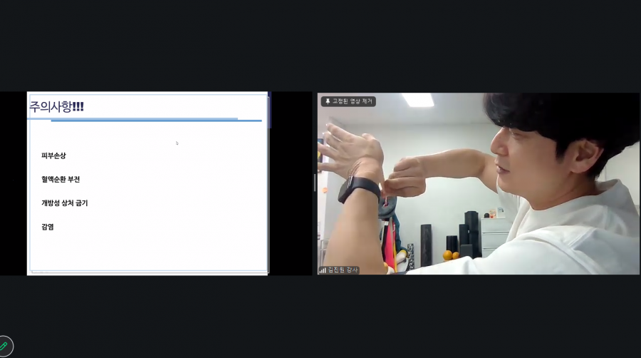 「통증 관리를 위한 부위별 테이핑 실습」 교육을 운영하였습니다.