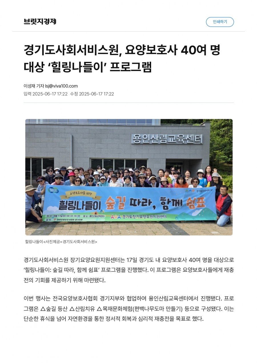 - 이전글[서울뉴스통신] 경기도사회서비스원, 요양보호사 40여명 대상 ‘힐링나들이’ 프로그램 25.12.29